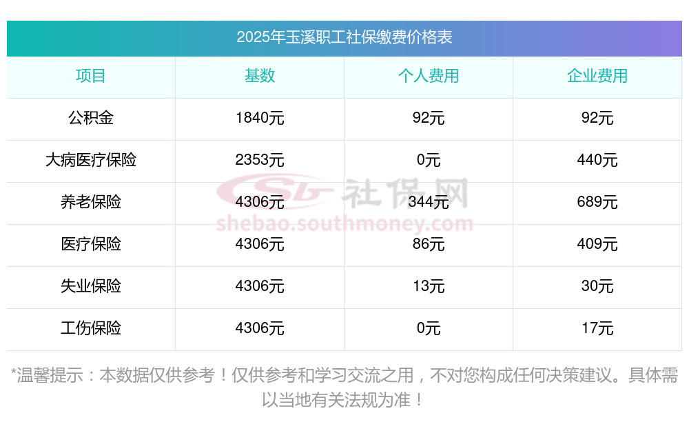 玉溪五险最少要交多少钱一个月多少钱?下表是2024-2025年玉溪社保费用明细参考,新社通app-社保缴费查询工具提供的最新数据如下: