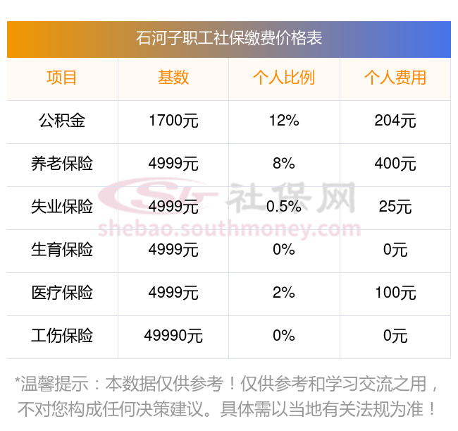2025年石河子社保缴费多少钱?下表是2024-2025年石河子社保费用明细参考,新社通app-社保缴费查询工具提供的最新数据如下: