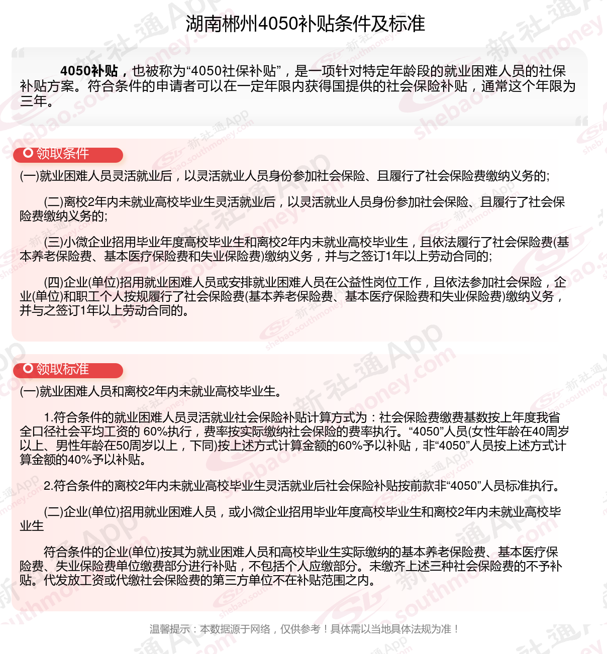 以上就是湖南郴州4050灵活就业社保补贴的相关内容,欢迎关注新社通/下载新社通APP了解更多五险一金专业资讯。