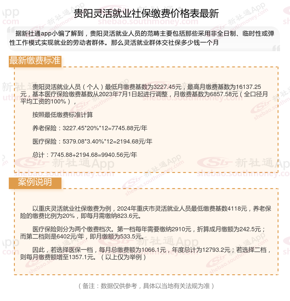 那么,个人社保是多少钱一个月 贵阳灵活社保交多少钱?根据新社通app-社保缴费查询工具提供的2025社保缴费标准详情数据: