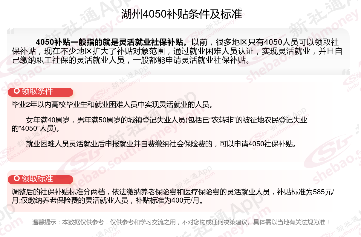 以上就是湖州4050灵活就业社保补贴的相关内容,欢迎关注新社通/下载新社通APP了解更多五险一金专业资讯。
