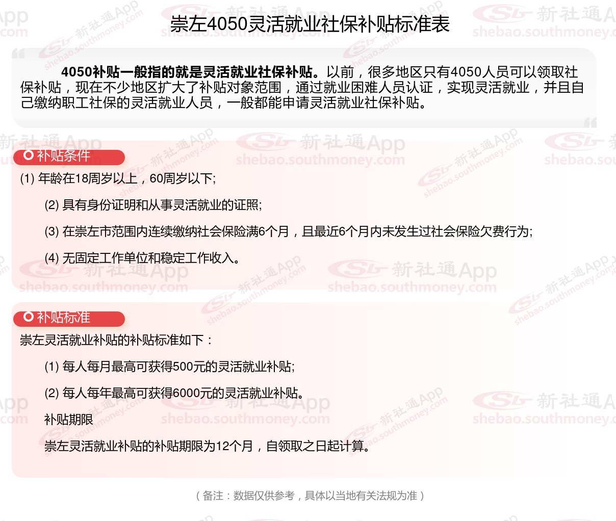 一、2025年崇左4050社保补贴标准是怎么样的?崇左4050一年可拿多少钱?