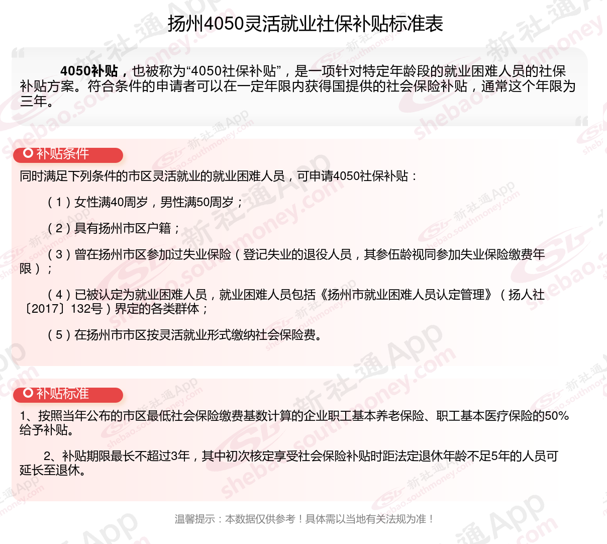 以上就是扬州4050灵活就业困难人员社保补贴的相关内容,欢迎关注新社通/下载新社通APP了解更多五险一金专业资讯。