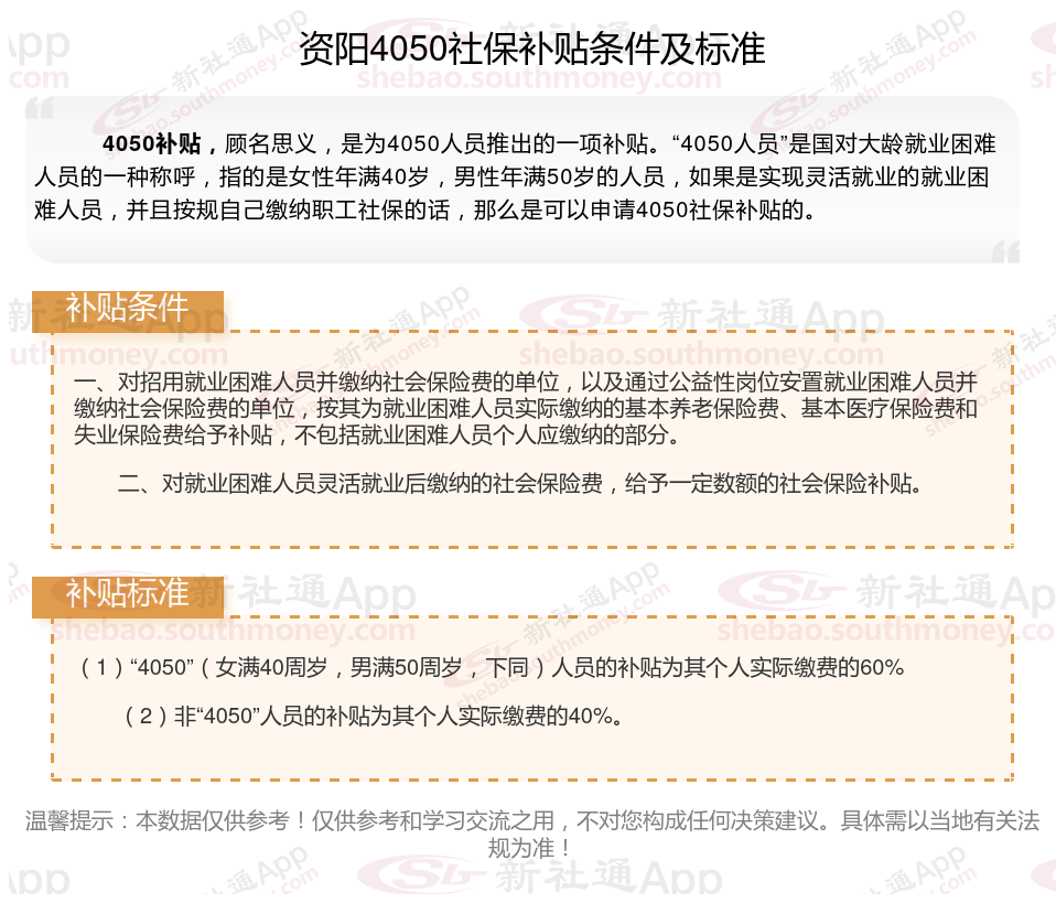 以上就是资阳4050灵活就业社保补贴的相关内容,欢迎关注新社通/下载新社通APP了解更多五险一金专业资讯。
