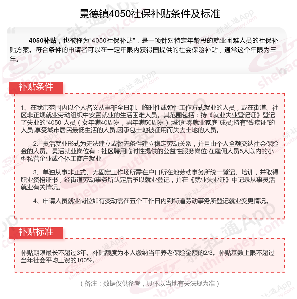 一、景德镇4050社保补贴标准及条件2025年最新消息