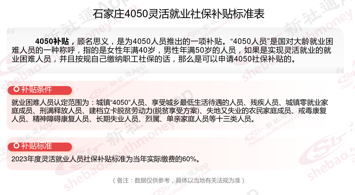 一、2025年石家庄4050社保补贴标准是怎么样的?石家庄4050一年可拿多少钱?
