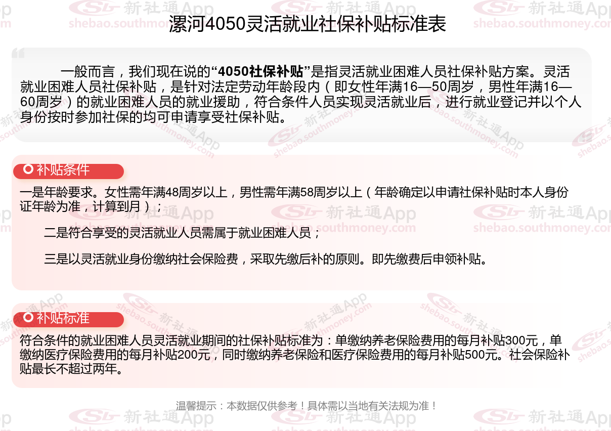 以上就是漯河4050灵活就业社保补贴的相关内容,欢迎关注新社通/下载新社通APP了解更多五险一金专业资讯。