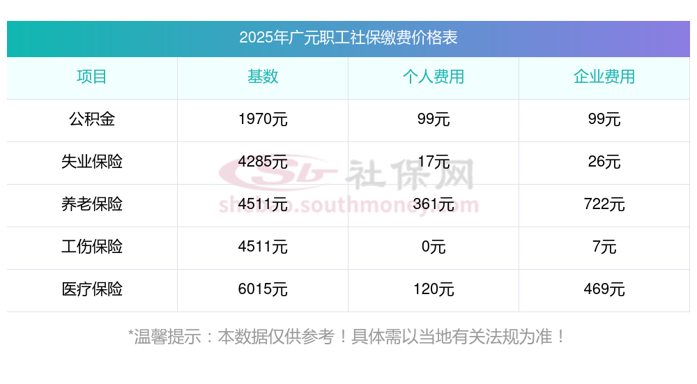 2025年广元社保缴费价格表最新消息?广元社保交多少钱一个月?下表是2024-2025年广元社保费用明细参考,新社通app-社保缴费查询工具提供的最新数据如下: