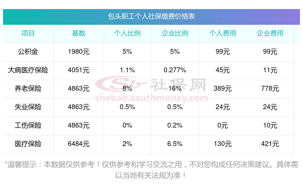 2025年包头社保缴纳比例,2025年包头社保缴费多少钱?下表是2024-2025年包头社保费用明细参考,新社通app-社保缴费查询工具提供的最新数据如下: