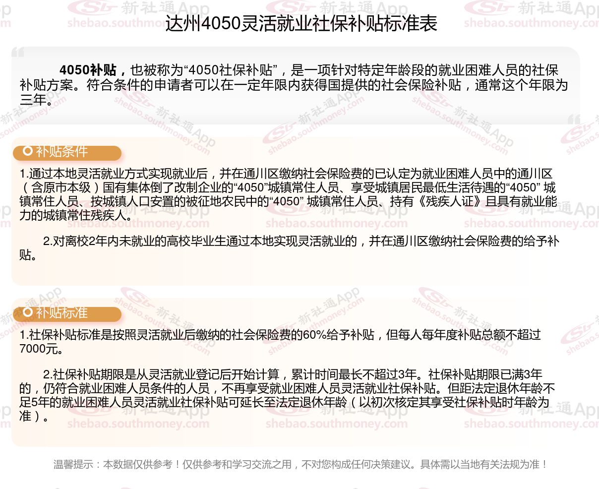 以上就是达州4050灵活就业社保补贴的相关内容,欢迎关注新社通/下载新社通APP了解更多五险一金专业资讯。