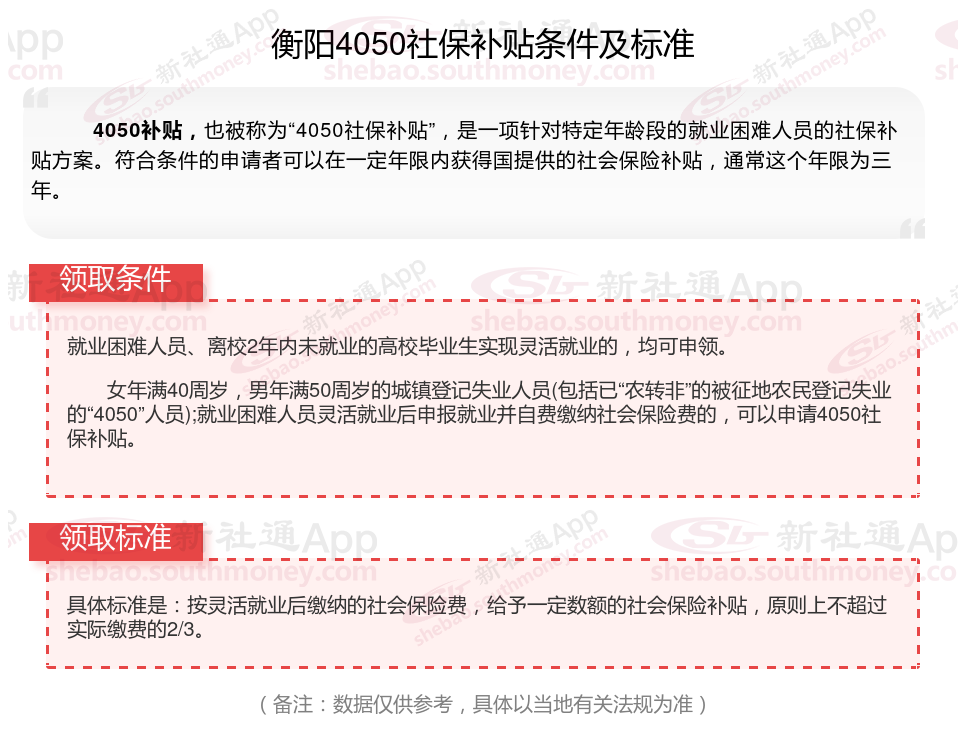 一、衡阳4050社保补贴标准及条件2025年最新消息