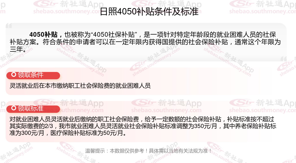 2025日照4050补贴主要针对的是年龄在40岁以上的女性和50岁以上的男性,这些人群通常因为年龄较大而面临就业困难。