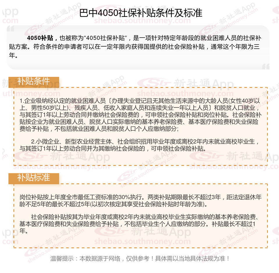 1、巴中4050社保补贴申请条件