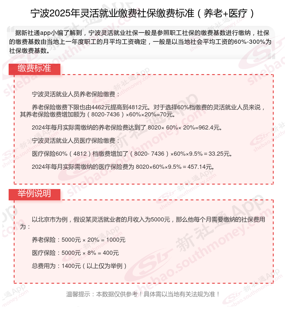 宁波灵活就业人员社保每月交多少钱?根据新社通app-社保缴费查询工具提供的最新数据如下: