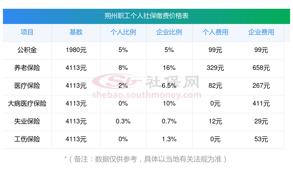 朔州社保一个月交多少钱,个人缴纳多少钱一个月?下面和社保网app一起来看看朔州最低标准社保费用明细参考,新社通app-社保缴费查询工具提供的最新数据如下: