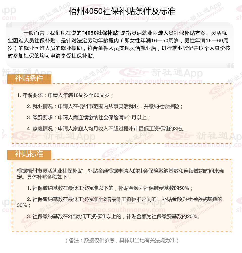 二2025年梧州灵活就业4050社保补贴标准及条件是什么