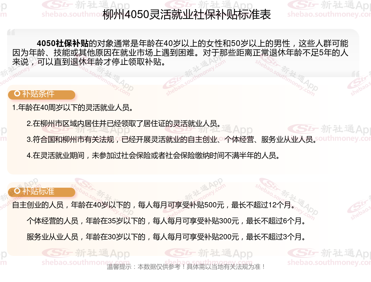 以上就是柳州4050灵活就业社保补贴的相关内容,欢迎关注新社通/下载新社通APP了解更多五险一金专业资讯。
