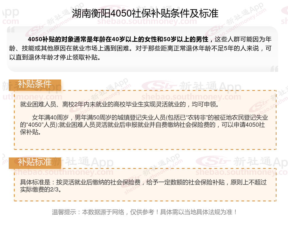 一、2025年湖南衡阳灵活就业4050社保补贴标准及条件是什么