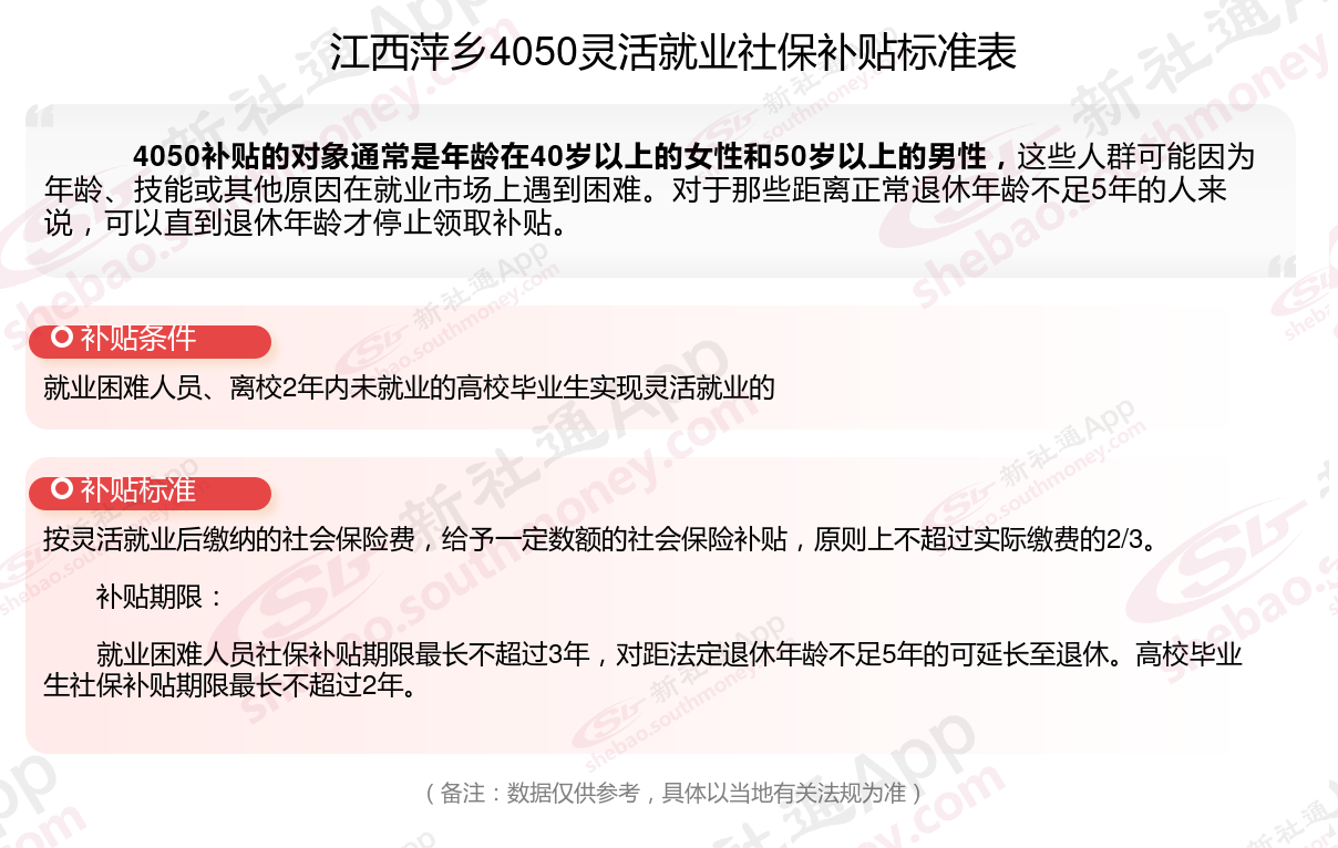 一、2025年江西萍乡4050社保补贴标准是怎么样的?江西萍乡4050一年可拿多少钱?
