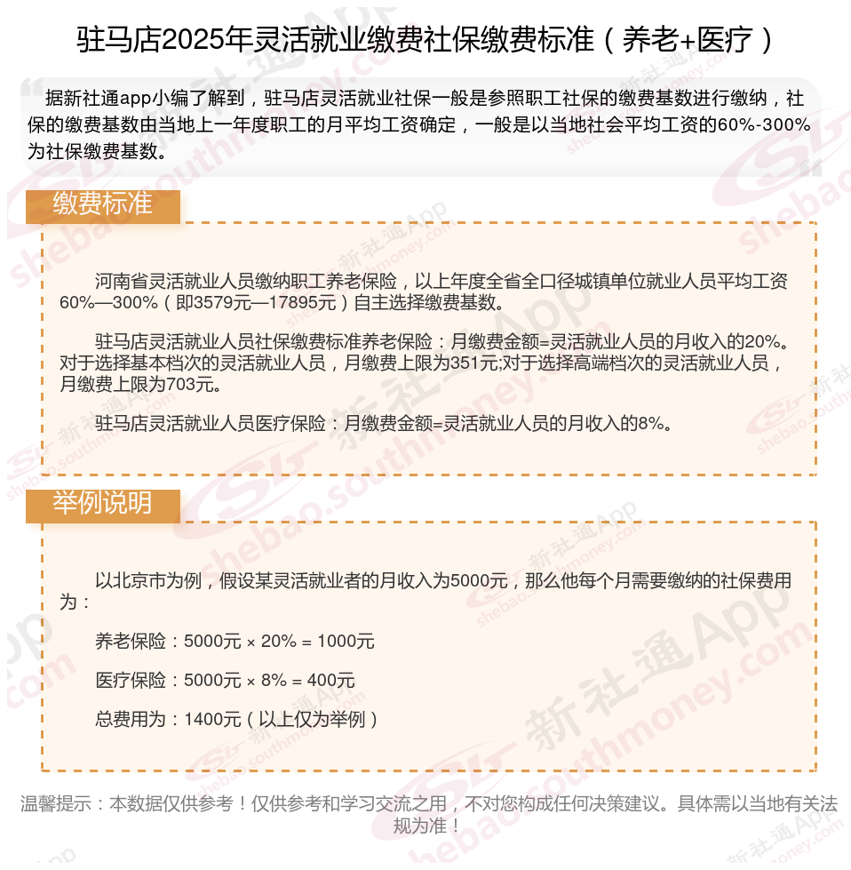 那么,驻马店灵活就业人员社保缴费标准2024-2025最新来了,交社保有什么好处?根据新社通app-社保缴费查询工具提供的2025社保缴费标准详情数据: