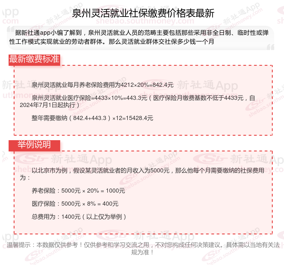 泉州灵活就业医疗保险=4433×10%=443.3元(医疗保险月缴费基数不低于4433元,自2024年7月1日起执行)