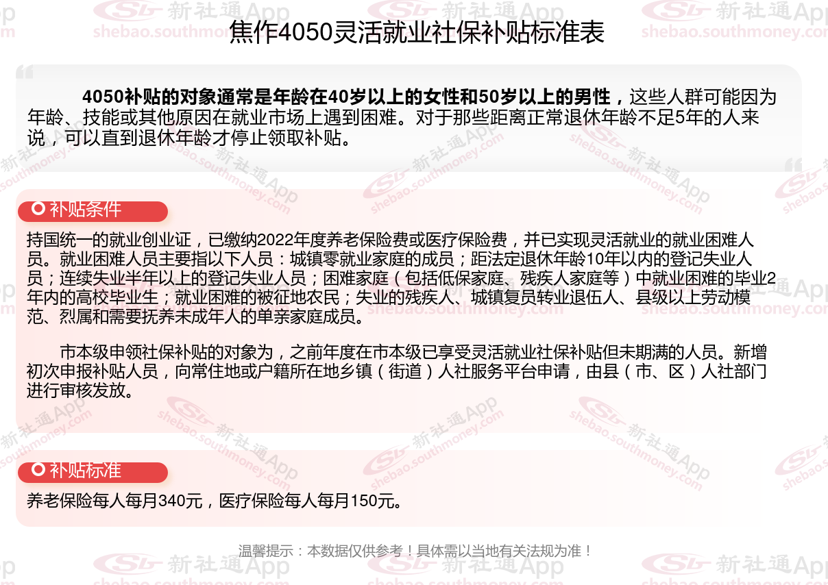 二2025年焦作灵活就业4050社保补贴标准及条件是什么