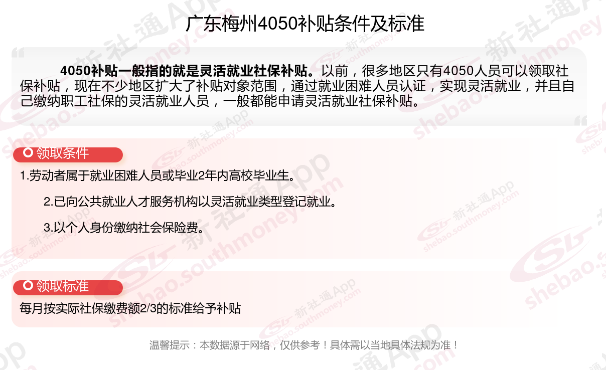 二、广东梅州4050社保补贴标准及条件4050社保补贴,最新如下
