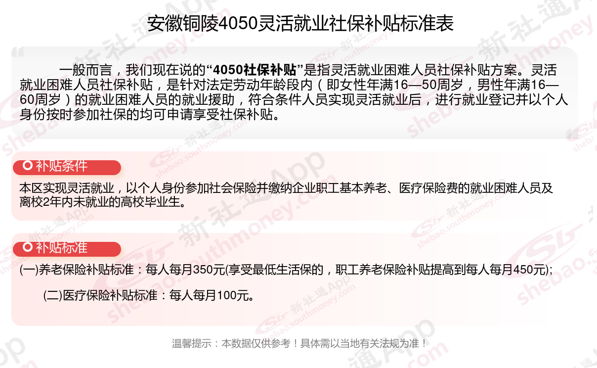 二、2025年安徽铜陵4050社保补贴标准,最新领取条件来了