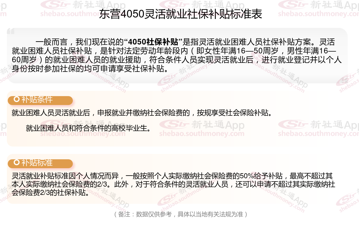 以上就是东营4050灵活就业社保补贴的相关内容,欢迎关注新社通/下载新社通APP了解更多五险一金专业资讯。