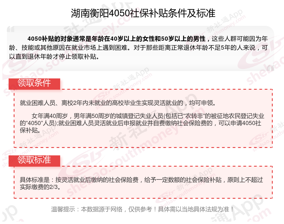 二、2025年湖南衡阳4050社保补贴标准是多少,最新4050社保补贴领取条件来了