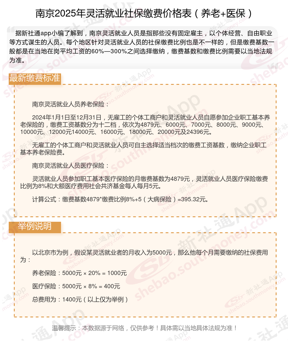 一、2025年南京灵活就业社保缴费标准公布啦 南京灵活就业社保多少钱一个月?