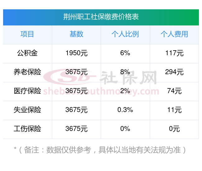2025年荆州社保缴费多少钱?下表是2024-2025年荆州社保费用明细参考,新社通app-社保缴费查询工具提供的最新数据如下: