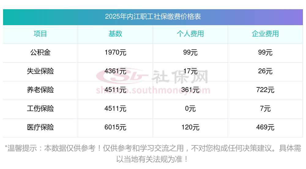 2025年内江社保缴费多少钱?下表是2023-2024年内江社保费用明细参考,如下: