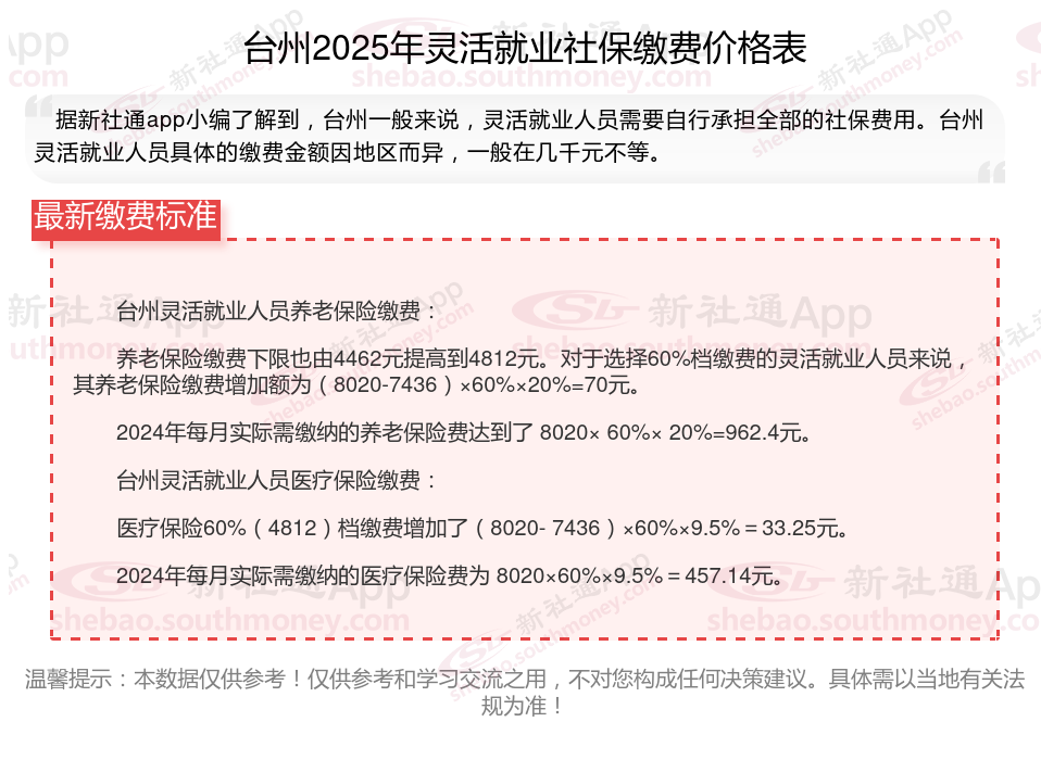 据新社通app数据显示,台州灵活就业养老保险缴费基数2024-2025年最新标准如下: