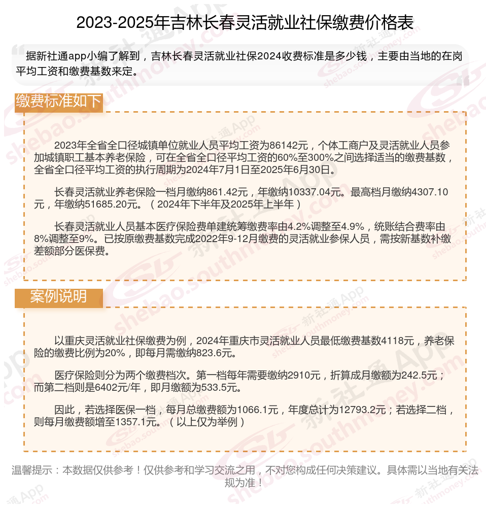 那么,吉林长春灵活就业人员社保缴费标准2024-2025最新来了,交社保有什么好处?根据新社通app-社保缴费查询工具提供的2025社保缴费标准详情数据: