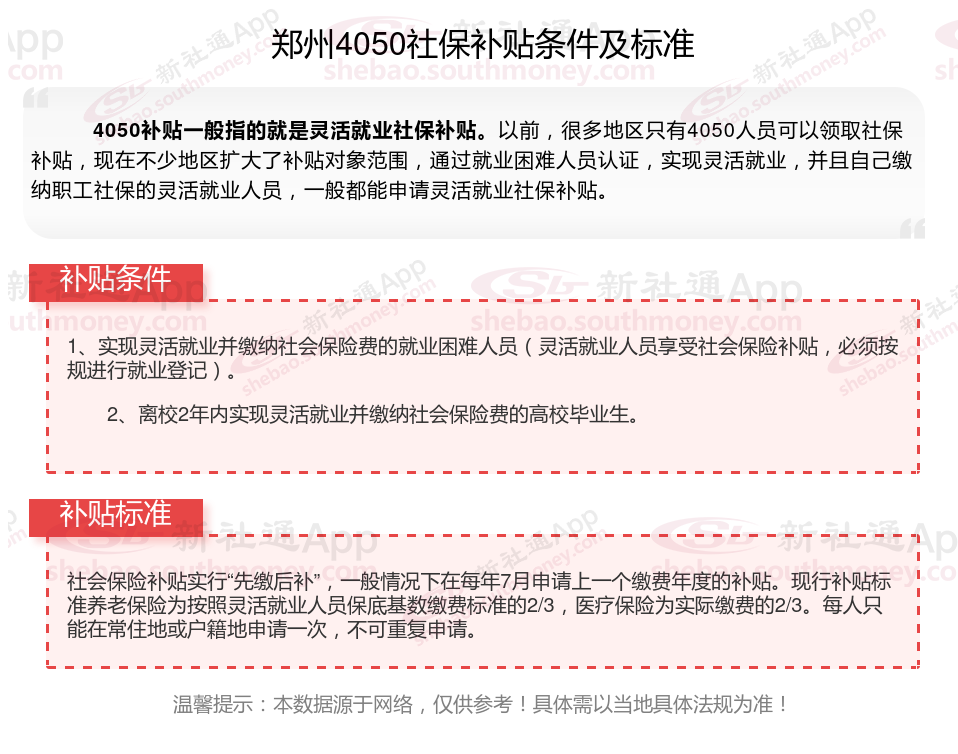 二、郑州4050社保补贴标准及条件4050社保补贴,最新如下