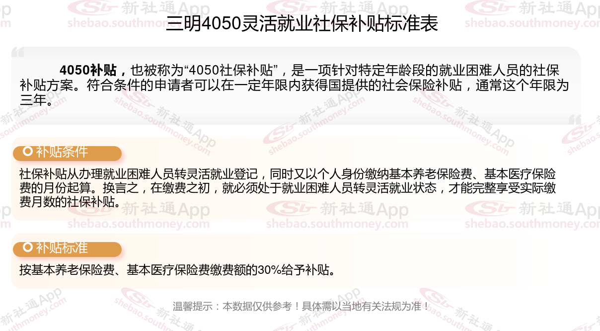以上就是三明4050灵活就业社保补贴的相关内容,欢迎关注新社通/下载新社通APP了解更多五险一金专业资讯。