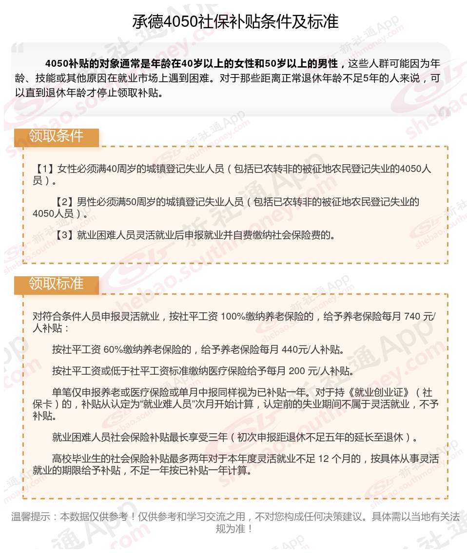 2025承德4050补贴主要针对的是年龄在40岁以上的女性和50岁以上的男性,这些人群通常因为年龄较大而面临就业困难。
