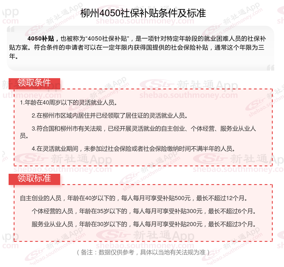 柳州4050灵活就业社保补贴是什么?今天聊一下4050补贴话题。44050社保补贴标准据新社通app小编了解,通常,4050社保补贴包含基本医疗保险和基本养老保险两个险种,社保补贴金额为申请人实际缴纳基本养老保险和基本医疗保险金额的2/3,具体标准以当地社保局公布的数据为准!那么柳州4050灵活就业社保补贴标准是多少钱?柳州4050社保补贴可以领取多少?接下来随新社通APP小编了解一下柳州4050灵活就业社保补贴的最新资讯。