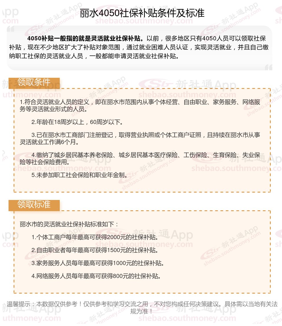 以上就是丽水4050灵活就业社保补贴的相关内容,欢迎关注新社通/下载新社通APP了解更多五险一金专业资讯。