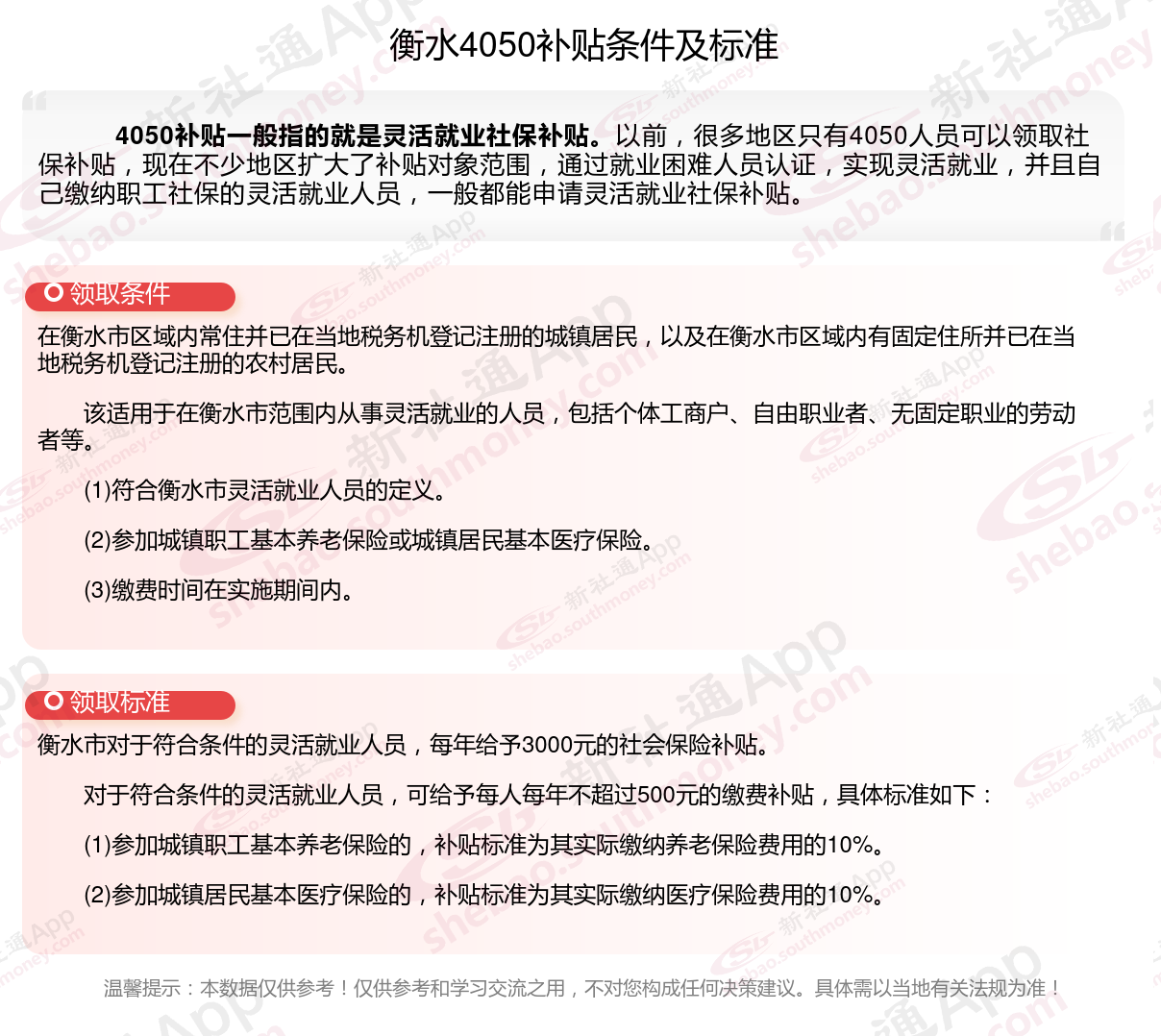 二、2025年衡水4050社保补贴标准是多少,最新4050社保补贴领取条件来了