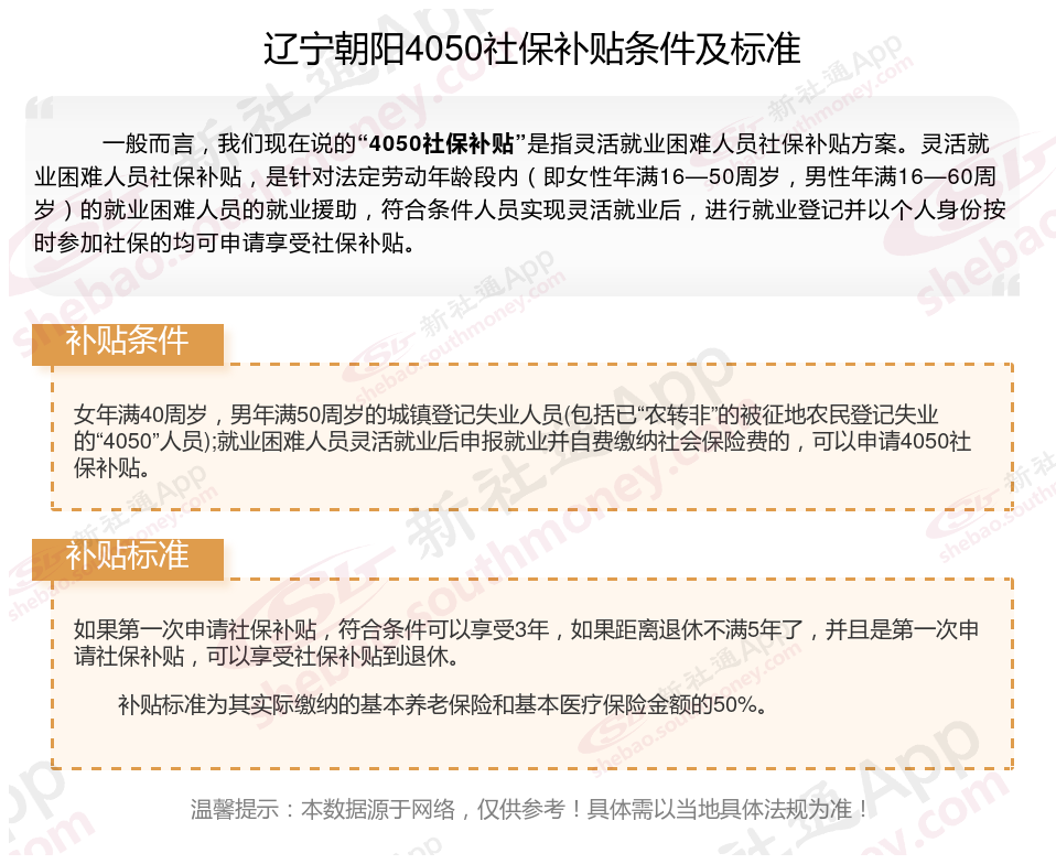 二、2025年辽宁朝阳灵活就业4050社保补贴标准及条件是什么?来了解一下