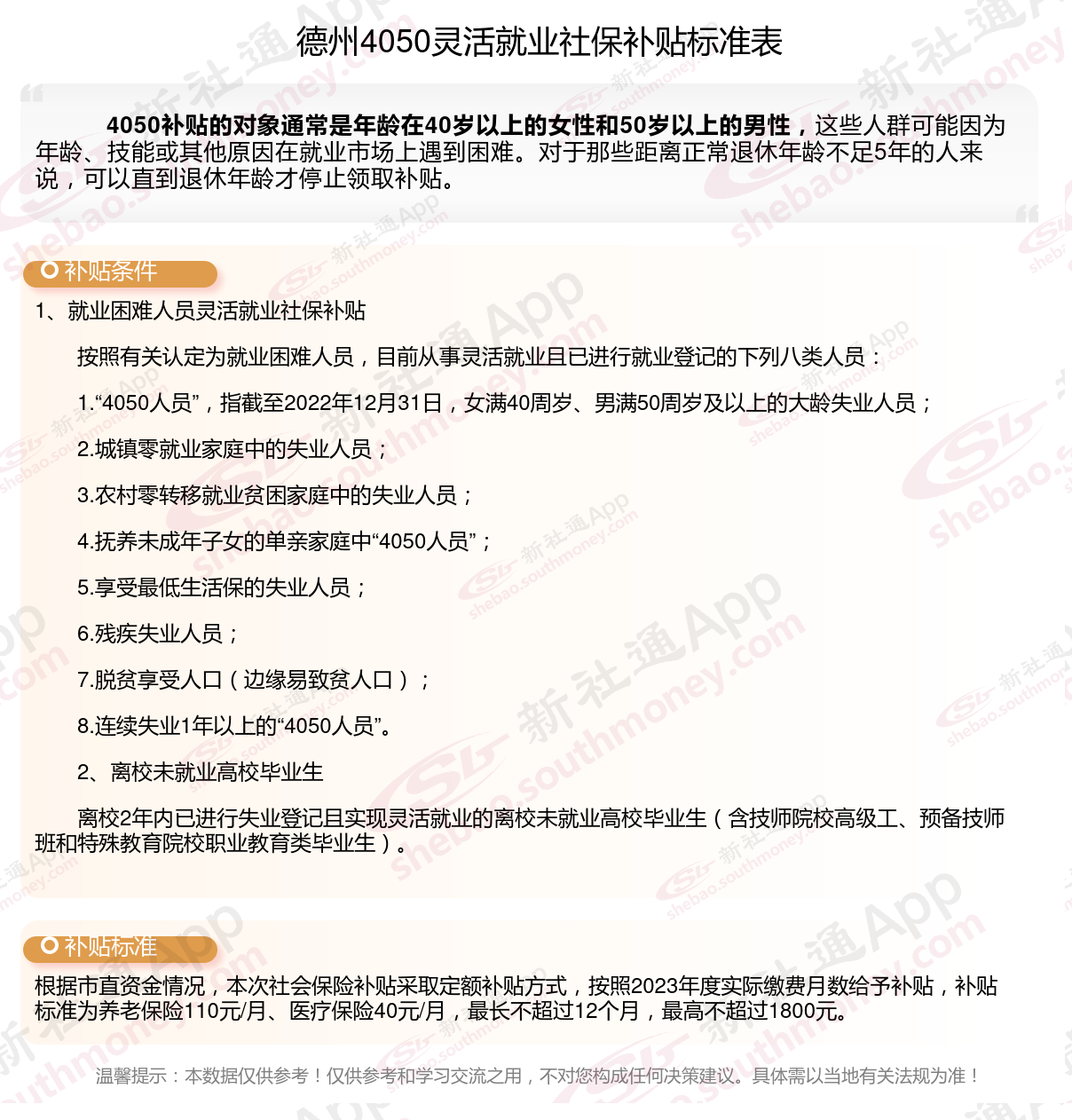 二、2025年德州4050社保补贴标准及条件,最新如下: