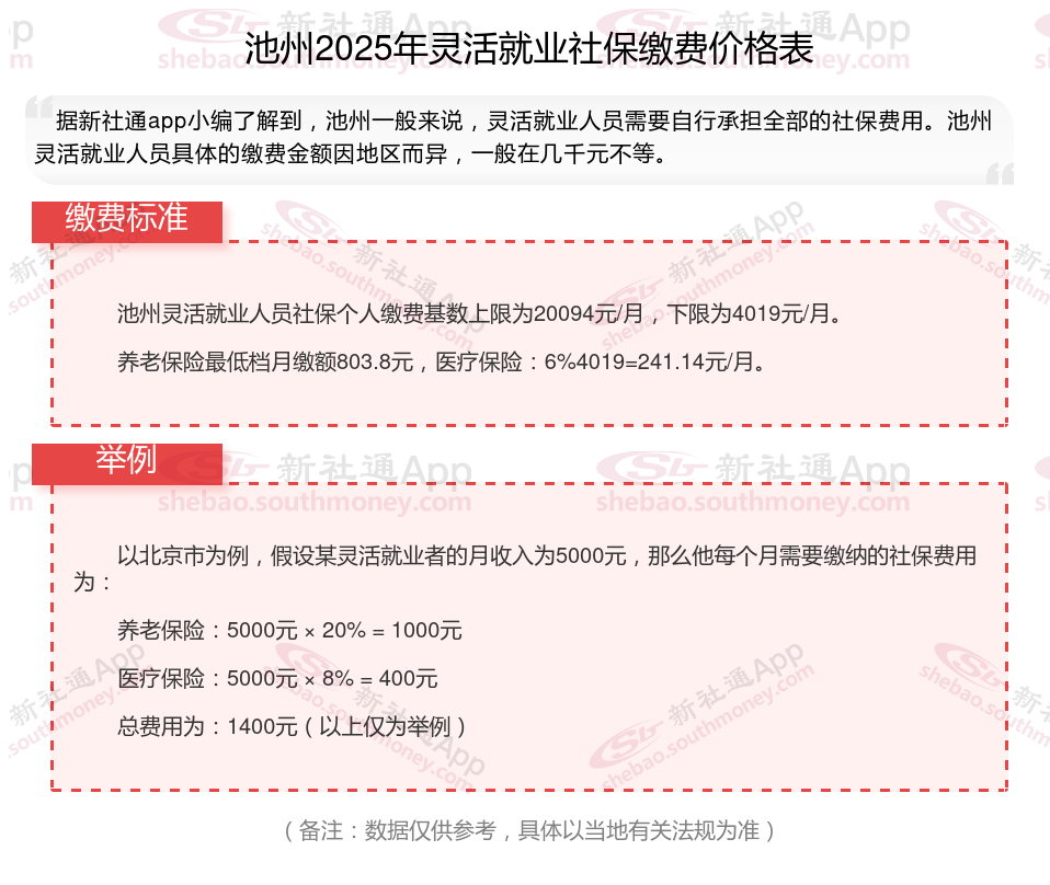 池州灵活就业人员社保个人缴费基数上限为20094元/月,下限为4019元/月。