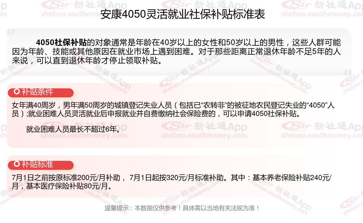 一、2025年安康4050社保补贴标准是怎么样的,附领取条件