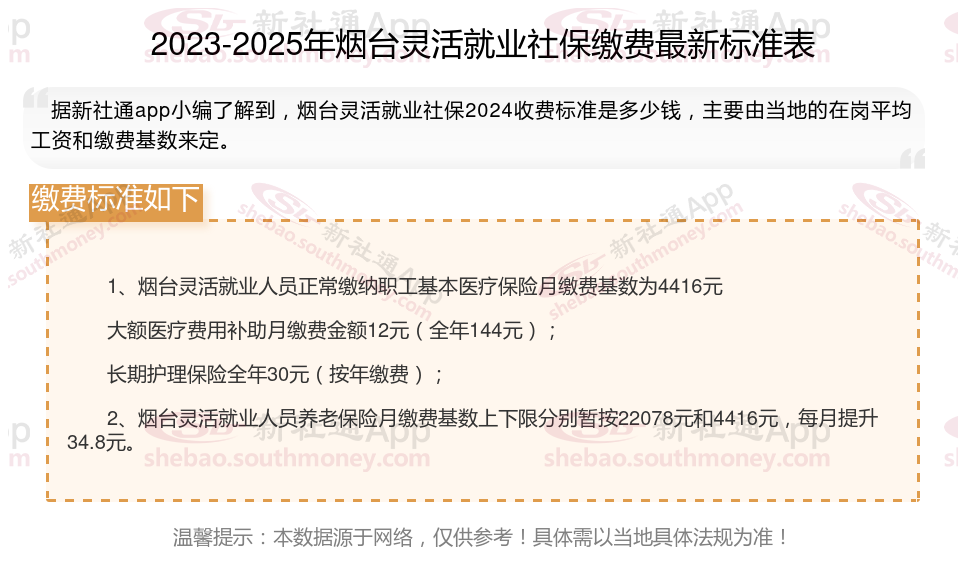 以上就是带来烟台灵活就业社保缴费标准相关知识,内容供参考,希望对你有帮助,欢迎关注/下载新社通APP解锁更多社保专业资讯。