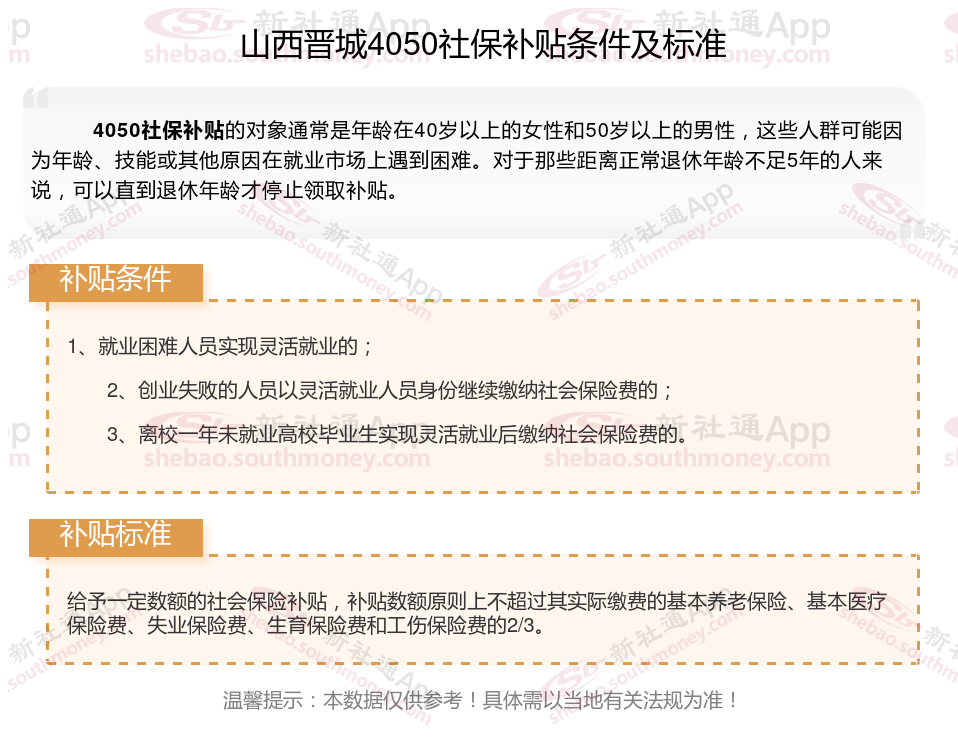 2025山西晋城4050补贴主要针对的是年龄在40岁以上的女性和50岁以上的男性,这些人群通常因为年龄较大而面临就业困难。