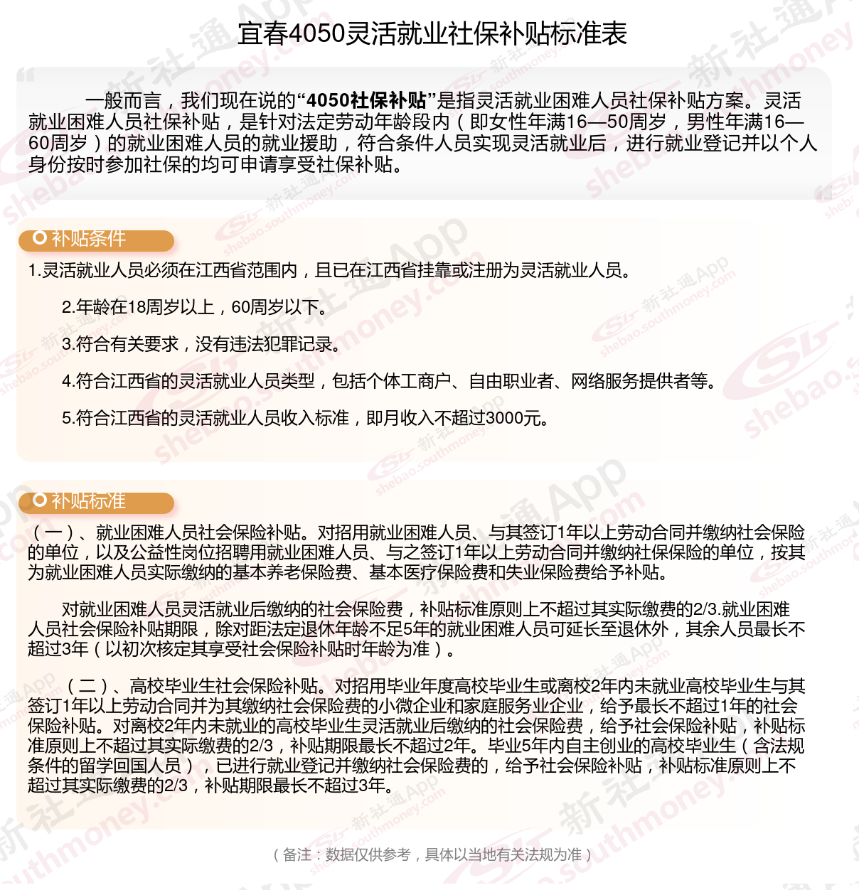 以上就是宜春4050灵活就业社保补贴的相关内容,欢迎关注新社通/下载新社通APP了解更多五险一金专业资讯。