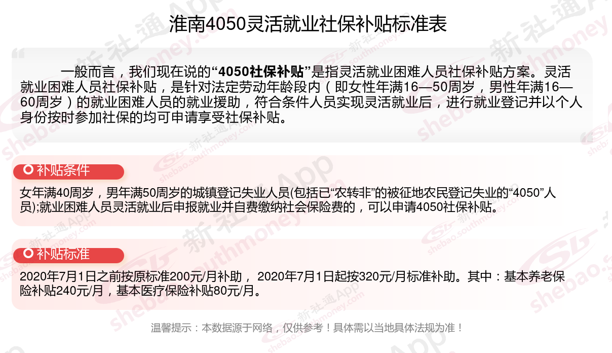 二、2025年淮南4050社保补贴标准及条件是什么?