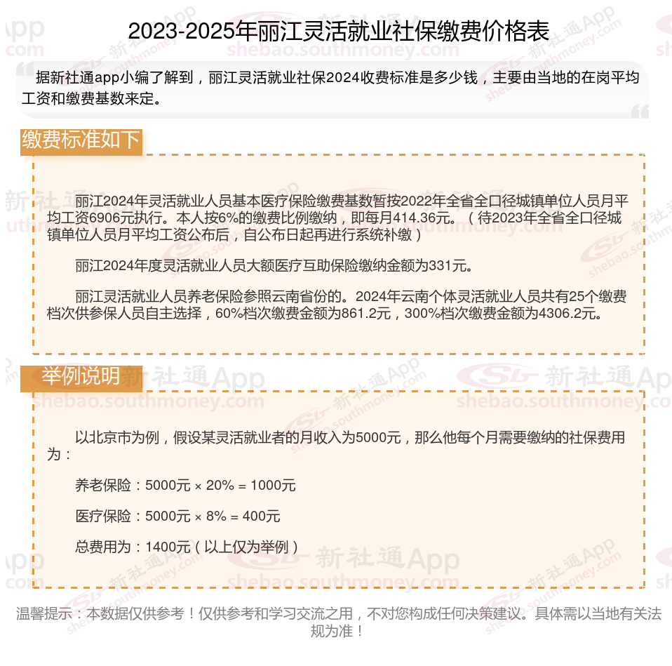 据新社通app数据显示,丽江企业灵活就业养老保险的缴费基数为:4306.2元。